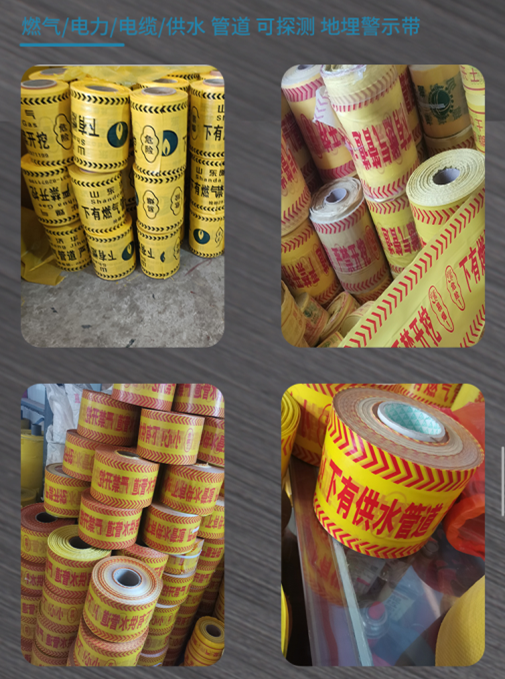 A 警示帶鋪設(shè)施工方便,施工與埋管同時(shí)進(jìn)行,埋覆與地下與管線中間,鋪設(shè)在管道上面30-50cm...